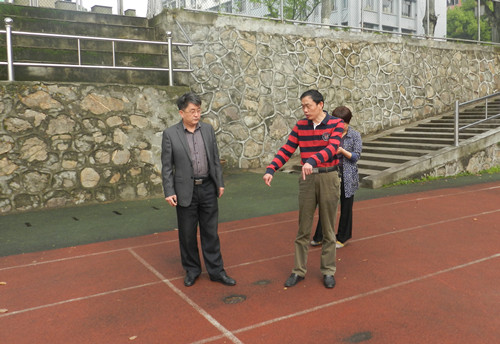 浔东校区管理办领导现场察看田径场工程进度