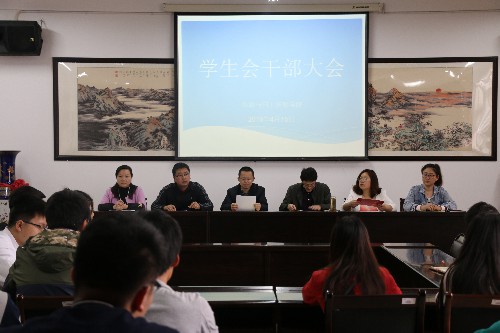 为总结提升学生会干部工作,4月15日中午,旅游与国土资源学院在厚德楼415会议室,召开学生干部大会。党委书记黄伟出席会议,学生科团委老师及全体学生会成员参加会议。