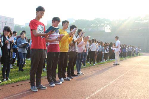 各连队负责人及各班班长给同学们发放了晨读材料,同学们十分投入,声音此起彼伏,一阵阵洪亮的诵读声唤醒了宁静的春季校园。集体朗诵过后,同学们又按照要求进行自由诵读,加深对材料的理解和记忆。最后,同学们以齐读的方式完美的结束了本次晨读活动。