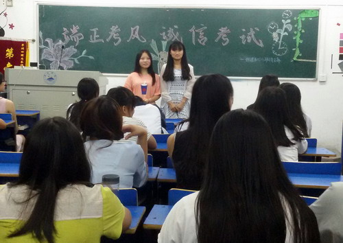 此次团日活动形式多样,内容丰富。活动伊始,有的班级通过播放ppt来批判考试中的不诚信行为,并希望同学们引以为鉴,能够以自信的姿态迎接即将到来的期末考试;有的班级则采用比赛的方式进行诚信知识竞赛,寓教于乐,让同学们在娱乐中了解到诚信的重要性;有的班级在强调端正考风考纪的同时,也积极动员同学们认真投入到后期复习之中。随后,主持人邀请成绩优秀的同学向大家传授学习经验,分享自身的学习技巧和复习功课的秘诀,并鼓励大家诚信应考,考出真实水平。最后,同学们纷纷在诚信倡议书上签下自己的名字,做出保证,严肃对待期末考试,严格遵守校规校纪,诚信考试,对自己负责。