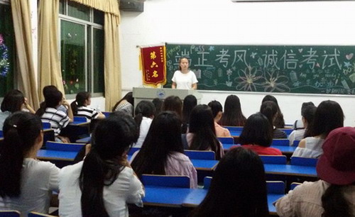 严纪律,正考风。为增强同学们的诚信意识,杜绝考试违纪作弊现象,6月5日晚,护理学院组织2015级全体同学开展了以“端正考风,诚信考试”为主题的团日活动。