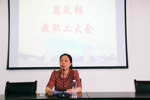 为确保学期末各项工作的顺利进行,6月15日下午,思政部在香远楼212会议室召开了全体教师大会,安排部署学期末各项工作。会议由思政部主任汪力平主持。