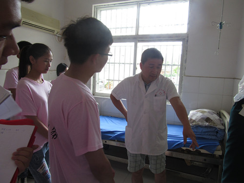 同学们参观了当地的马回岭镇中心医院,并进行了“农村卓越医生”问卷调查。同时,同学们在当地医务人员的带领下,参观了中心医院的各个科室,据了解,乡镇医院基础设施普遍简陋,医务工作者缺乏,待遇低,而且流动性很大。乡镇医院每年接纳最多的都是一些常见病病人,其他重病患者由于条件和技术所限,都要进行转诊。村民们文化水平普遍较低,医生与患者的沟通十分困难。