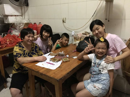 马回岭镇是一个典型的青壮年外出打工,老人儿童留守家园的乡镇。服务队结合这一现实情况,进行了留守儿童的身心健康状况调查,农村合作医疗问卷调查以及爱心支教活动。同学们与当地的小朋友相处融洽,一起载歌载舞,游戏互动,度过了一段快乐的时光。期间,服务队向当地的孩子发放调查问卷。根据调查结果显示,在马回岭镇,大多数的孩子,和爷爷奶奶生活在一起,甚至有的被寄养在亲戚家。他们与父母很少见面,而在与服务队同学的聊天中,也大多显得腼腆。同学们在老师的带领下,看望慰问留守儿童,给他们带来了书包、球拍还有文具等物品。同学们还上门义务辅导小朋友做功课,还教他们剪纸、画画和做游戏。