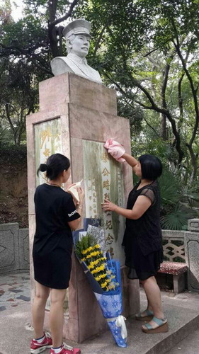 9月11日上午,外国语学院大外二党支部全体党员参加了位于甘棠湖畔的蔡公时烈士纪念碑祭扫活动,并向纪念碑献花。