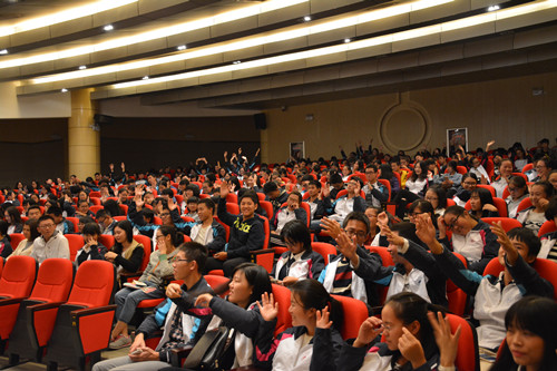 活动伊始,青年志愿者成员便为同学们带来了一场精彩的《感恩的心》手语表演,带动了现场火热的气氛。紧接着主持人以播放PPT的形式让同学们更为直观的了解到志愿者的工作性质和内容,引起了同学们广泛的兴趣与热情。大会过程中穿插的一个个小游戏也使活动增添了趣味性,轻松诙谐的小品表演更是将大会推向高潮。活动的最后,志愿者负责人带领全体同学庄严宣誓。本次大会在同学们雷鸣般的掌声中圆满结束。