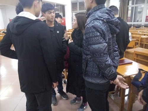为了更好地迎接“一二九”国学朗诵大赛,12月5日晚,机材学院在竞知楼五阶教室进行有序的排练活动,辅导员刘汤琪娜老师到场指导。