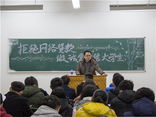 为加强会计学院综合管理工作,创建文明和谐的育人环境,保障学生的合法权益。12月18日晚,在立信楼217召开“拒绝网络贷款,做诚实守信大学生”主题班会,由大一各班班长与团支书参与,班会由饶泉老师主持,主要从“网络贷款”和“诚实守信”两方面展开。