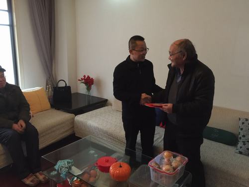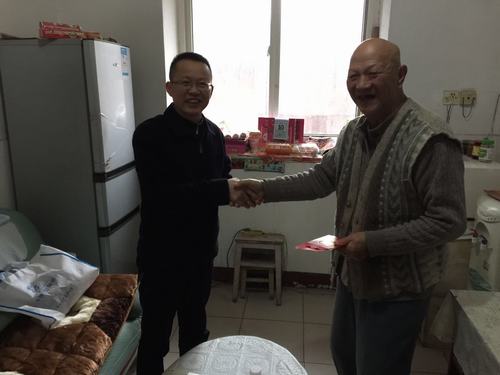 1月10日下午,旅游与国土资源学院党委书记黄伟在学院分会主席严宽荣、办公室副主任陆赛杰、学生科副科长龚双双的陪同下,走访慰问了在浔的退休老同志,送上了学校和学院的春节慰问金,也带去了学校党委对老同志的深情关怀和新年祝福。
