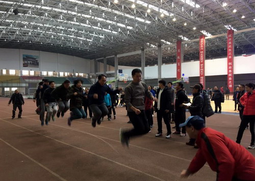 本次趣味运动会结合体育教学业务,共设置了一分钟跑篮、圈内颠足球、筷子夹乒乓球等三个个人项目,以及心心相印、蛟龙出海、集体跳绳等三个集体项目,尽管天气寒冷,但教职工们依然兴致盎然。全院教职工积极参与、密切配合,活动开展的如火如荼,热闹而激烈。每个项目竞争的都非常激烈,现场呐喊声和欢声笑语此起彼伏。