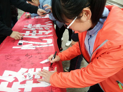 上午10:40,同学们集体穿戴整齐的校服,徽章和小红帽来到活动现场,短暂的现场宣誓仪式后,志愿者迅速进入自己负责的区域开展活动。活动有条不紊的进行着,各位同学热情十分高涨,积极的将自己的姓名写在了学雷锋横条上,希望用实际行动响应着毛主席的“向雷锋同志学习”的号召。