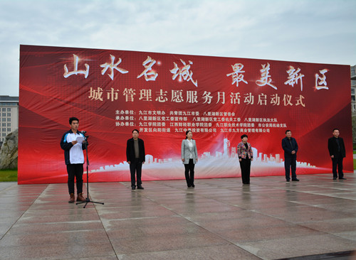 为扎实推进全市“打违治乱”整治工作,以建设文明、有序、美丽的八里湖新区,3月28日上午,九江市文明办、共青团九江市委、八里湖新区管委会于八里湖市民广场联合主办了“山水名城,最美新区”活动的启动仪式。出席本次活动的团队包括了八里湖新区党工委宣传部、党工委机关工委、八里湖新区执法大队、九江学院团委以及各界社会团体。