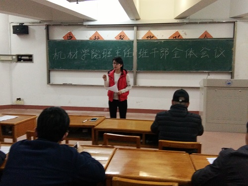 陈娜表示,机材学院高度重视此次大赛的组织工作,专门成立了竞赛领导小组,配合各班主任帮助各竞赛团队理清思路、明确目标,以有效的促进机材学院院内选拔赛的顺利开展。在对学生日常管理工作的要求中,她要求各班主任要严抓学生到课率,各班班长、团支书要认真督促同班同学到课,各班学习委员要如实填写班级课堂日志。在对学生“好习惯”养成教育中,陈娜表示学生需要良好的学习、生活习惯,希望班主任们能够注重对同学们这两方面习惯的引导。