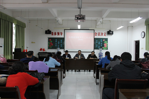 为持续推进学院工作建设,进一步做好学生的思想与安全工作,4月26日下午,外国语学院于香远楼315会议室开展第六期学生工作沙龙。外国语学院党委书记杨杰、团委书记江山、学生科科长吴章义和全体班主任、辅导员老师参加了此次沙龙,此次活动由吴章义科长主持。