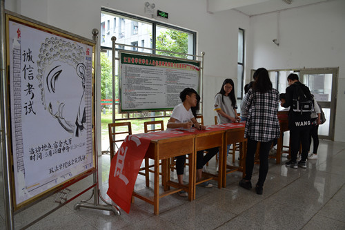 期末将至,为了培养同学们树立诚信考试,文明做人的理念,政法学院于5月24日中午在宿舍大厅举办了“诚信考试”主题活动。