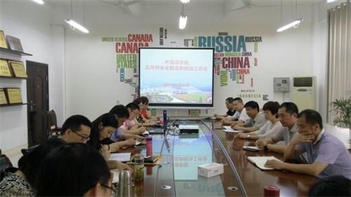 为扎实推进学院安全稳定和综治工作,营造安全稳定的育人环境,5月31日下午,外国语学院于香远楼219会议室召开五月份安全稳定和综治工作会,外国语学院院长韩琨、党委书记杨杰、副院长柴克清、副书记彭晓及各科(室)和教研室负责人参加了会议,会议由杨杰书记主持。