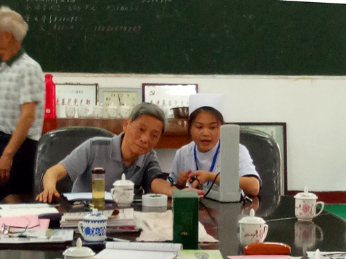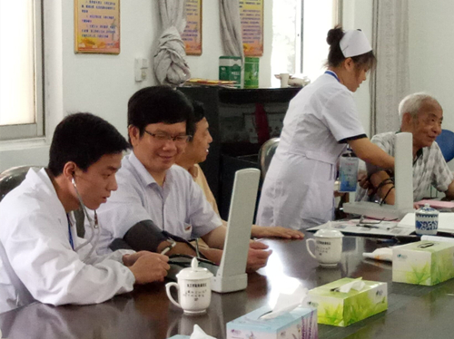 在下午南湖校区的服务工作中,恰逢王万山副校长在南湖校区调研指导工作,王副校长对志愿队长期以来的工作给予了充分的肯定,并对志愿队的工作提出殷切期望。随后,还兴致勃勃得让同学们测量血压。整个活动中,同学们运用自己的医学专业技能娴熟的为大家服务,还将自己动手制作的《爱心手册》分发给离退休老同志。