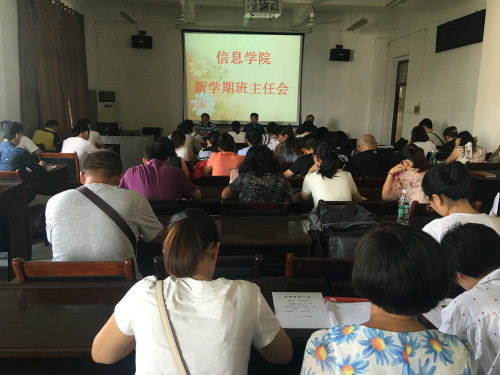 为确保新学期各项工作有序开展,9月3日下午,信息学院在文友楼424召开全体辅导员、班主任工作会议,党委书记袁宜如出席会议,全体班主任、辅导员参加会议。