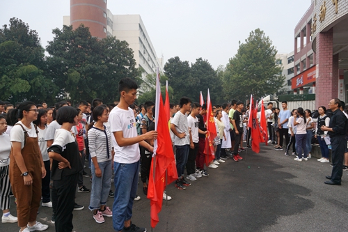 10月10号早上6点半,刘书记来到一食堂旁的学生活动中心,大一学生以班级为单位整齐列队。在晨跑前,刘书记强调了晨跑的重要性,他说“一年之计在于春,一日之计在于晨,晨跑会让人具有充沛的活力和良好的精神状态面对新的一天。”刘书记希望同学们应坚持跑操,养成良好的生活习惯。晨跑过程中,各班班旗迎风飘扬,同学们通过响亮有力的口号来调整步伐,一个个矫健的身影,排起了长龙,宛如一道灿烂的长虹,架起一道梦想之桥!