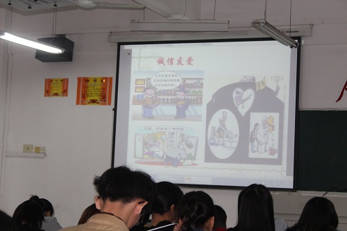 为贯彻落实加强大学生的思政教育工作,引导大学生正确认识自我、认识社会,引导学生树立正确的价值观、人生观、世界观。10月12日上午,外国语学院院长韩琨在香远楼216教室为A1514班同学们上了一堂生动而富有哲理的思政课。