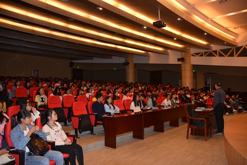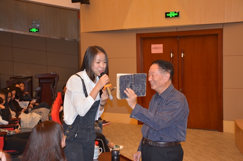 讲座伊始,陈忠教授由一系列列尖锐的问题引发同学们深思,指出当代大学生普遍存在的一些陋习,希望同学们有则改之无则加勉。然后,他围绕“几个数字、几点认识、几条建议”三个方面来谈黄金般的大学生活。陈忠教授表示读大学更重要的十学会做人,要做主人而不是奴隶。最后,在师生互动环节,陈忠教授更是结合自身丰富的阅历,解答同学们的疑问,并为学生们赠送了书籍。
