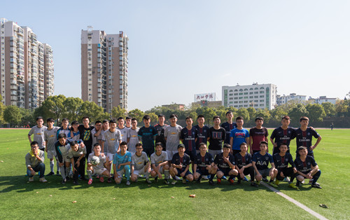 为了培养同学们的团队合作精神,加强学院之间的交流,基础医学院足球队和电商学院足球队于11月4日在浔东足球场举行了一场友谊赛。