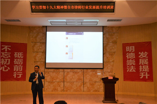 活动伊始,李大发主任首先以一个发展的“发”字,表达了对在场人员的美好祝愿。李主任围绕十九大报告精神中法治部分要加大全面普法力度,引出了当前律师职业的责任、义务和机遇。他还提出,律师讲座是普法的重要形式,因此,掌握生动演讲秘诀也是律师应当学会的技能,不但要会设计悬念,还要懂得在活用图片的同时幽默演讲。现场出售信封环节引发高潮,他以物超所值的成交价格,让与会人员优秀的律师要敢于营销,要善于营销。李主语言风趣幽默,整场讲谈会的氛围轻松愉快,场下观众也积极响应,掌声不断。最后,李大发主任借习主席的话,“撸起袖子加油干”,结束了今天的讲谈会。