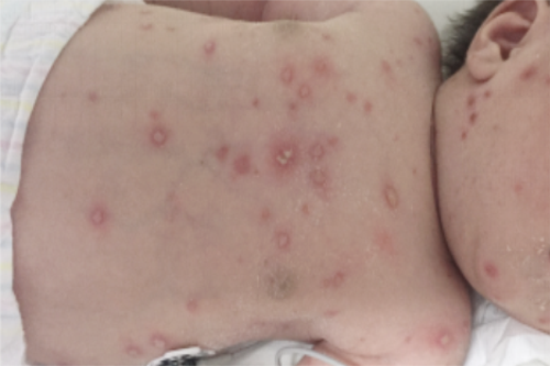 先天性水痘为新生儿较罕见疾病之一,病死率高达30%,主要死因为肺部感染、颅内感染等严重并发症。该患儿出生仅10天时,颜面部开始出现疱疹,后逐渐蔓延至头颈部、躯干及四肢,量较多,当地县医院告知急需转上级医院。患儿家属辗转于九江市各大医院,均被告知医疗水平有限,无法医治。家属心急如焚,怀揣着最后一丝希望求诊于附属医院儿科,被告知可以入院时,家属激动不已。入院后,患儿安排入隔离病房,采取严格接触隔离措施。诊疗过程中,发现患儿已出现肝功能损害、肺部感染等严重并发症,医护人员立即在第一时间给予抗感染、免疫调节、皮肤护理等全面治疗。经过数日的精心治疗与护理,患儿最终痊愈。