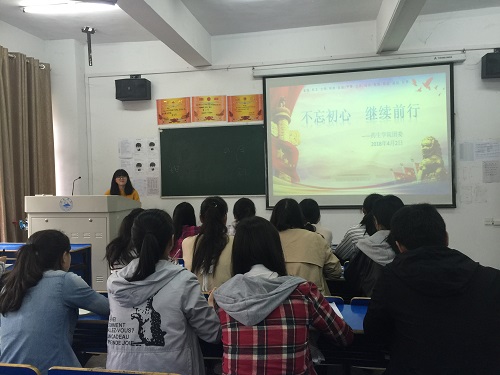 为进一步提升基层团支部的活力,提高基层团干的工作水平,4月4日中午,药生学院于笃学楼105开展了“不忘初心,继续前行”团课教育活动。本次团课由大三优秀团支书代表刘欢主讲,大一团支部全体成员参加。