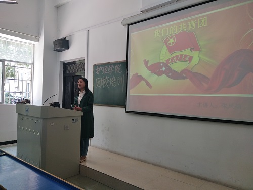 为了提高共青团团员的政治素养,坚定其入团初心,4月19日中午,护理学院在华文楼101开展了本学期团校培训第一讲。团委张凤娟老师作主讲,新申请入团的团员及17级各班团干参加了此次培训。