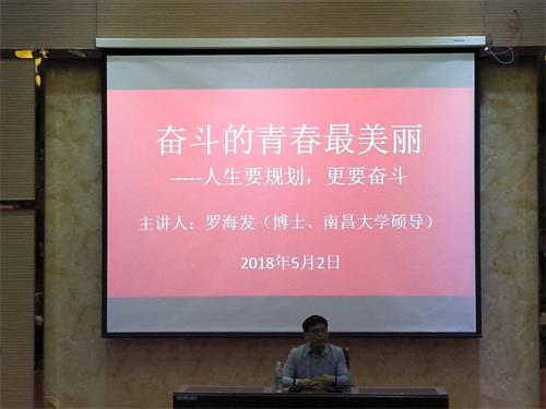 为激励学生勤奋学习,引导学生做好职业规划,5月2日晚,外国语学院在香远楼三楼报告厅举办了“校友面对面――奋斗的青春最美丽”活动。本次“校友面对面”邀请的是该院2007届校友罗海发,外国语学院副院长柴克清、院党委副书记彭晓、以及各年级学生代表参加了此次活动,活动由彭晓副书记主持。
