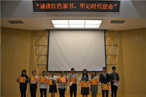 为缅怀革命先烈,牢记时代使命,让大学生在“红色家书”中重温革命历史,政法学院于5月10日晚在八里湖校区综合楼四楼报告厅举办了以“诵读红色家书,牢记时代使命”为主题的朗读比赛,全体大一学生积极参与。