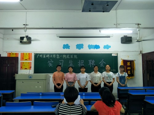 5月17日下午,护理学院学生科科长范玲玲和辅导员袁青兰老师在思贤楼205对本届报名参加广州医科大学附属第一医院实习的同学进行面试选拔。