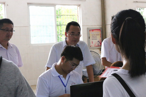 9月3日下午,迎新工作正式开始,各志愿者们积极为新生家长和新生服务。行李存放处、报道现场、宿舍安排处等报道环节处处可以看到电商志愿者的身影,他们热情、周到、高效、耐心的对新生们讲解报道流程,引导他们顺利完成报道的各个环节,他们的服务也得到了2018级新生家长及同学的认可。学院院长郑祚双、党委书记丁文林也多次来到报道现场指导迎新报名工作。