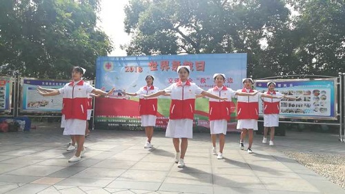 阳光明媚,秋风飒爽。护理学院大学生志愿者们早早集合到达烟水亭,9点多的周末,广场上已经人潮拥挤, 带有宣传标语的红色横幅挂满广场,宣传海报上的“交通安全救在身边”格外引人注目。我院志愿者们通过快闪秀的形式,现场宣传安全急救知识,呼吁市民群众重视和学习现场急救。她们身着护士服、急救衣,头戴燕尾帽,用柔美的合声,柔情的手语舞蹈表演,宣传“交通安全救在身边”的主题,传播“急救为人人,人人可急救”的理念。随后,交警、红十字志愿者、九江市柴桑救援队、九江市保安公司红十字救援队、120呼救中心一道,进行了两场紧张的现场救护模拟演练。