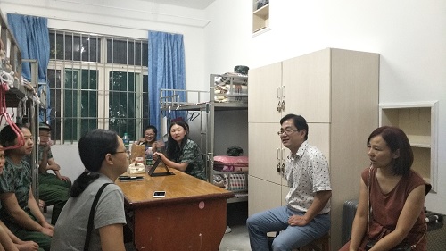 正值新生军训期间,为及时了解文传新生对大学生活的适应情况,9月11日晚,文传学院领导汤红莲、朱全国、吴疆、陈建军及各科室负责人和新生班主任一起,来到新生宿舍看望新生,并与他们进行了亲切交谈。