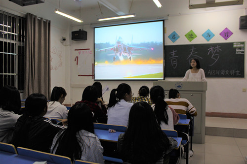活动中,团支书以PPT的形式带领着同学们见证一幅幅国家飞速发展的宏图,聆听了一首首振奋人心的颂歌,所有的视觉听觉冲击、增强着同学们的爱国情怀。接下来,同学们踊跃上台抒发紧扣时代脉搏、青春梦,将红色正能量注入到学习生活的氛围中去,强化了同学们的责任感和使命感。