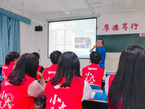 活动过程中,九江市益启公益事业发展中心创办人闵跃翔,一位有着朴素公益情怀的志愿者,一位“心如明月爱如阳”的公益人向志愿者们讲述了贫困山区孩子们的日常生活,并介绍了对接志愿者的基本工作。紧接着,九江市志愿服务联合会副秘书长欧书红采用让志愿者们提问的方式与志愿者进行了互动,不仅使现场气氛变得活跃,也使志愿者们对免费午餐活动有了一个更深刻的了解,并通过这次机会招选免费午餐微博活动的对接人,为志愿者队伍注入新鲜的血液。最后,志愿者们与老师们留下了温馨的合影,为此次活动画上了一个圆满的句号。