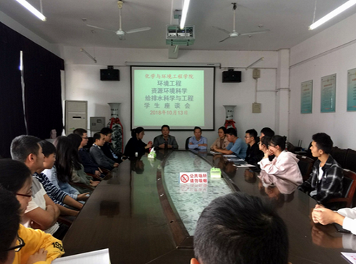 为了深入了解化环学院环境类专业学生的学习和生活情况,10月13日,化环学院在化环教学楼五楼会议室召开了环境工程、资源环境科学和给排水科学与工程三个专业的学生座谈会,化环学院杨期勇副院长,鄱阳湖生态研究中心的邱秀文博士、曾明博士、陈剑峰博士,以及环境工程教研室的相关老师列席了会议。
