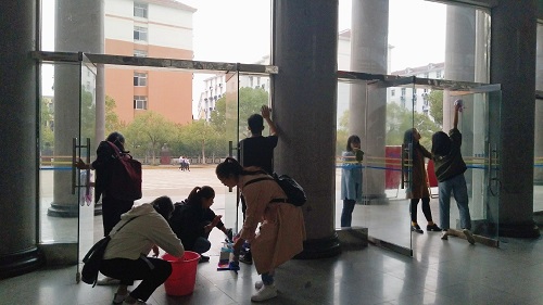 为迎接本科教学审核评估,营造整洁、卫生的校园环境,近期文传学院开展系列卫生清扫活动,扮靓校园迎接本科教学审核评估。