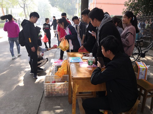本次活动以校内水果销售展开。目前校内水果店仅有一家,存在巨大的市场占有份额,由此选择水果销售方式,抓住销售热点,可见同学们的市场分析能力较强。活动前期,通过与供应商联系,选择价格低,信用度高,质量可保证的水果批发商更是考验了同学们沟通交流及市场营销能力。以“为大家服务”的销售态度及便捷、省时省力、送货上门的服务方式吸引了许多同学前来购买,场面异常火爆。