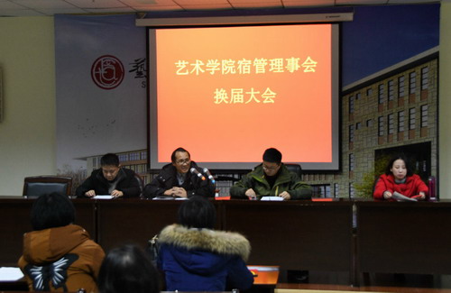 为加强艺术学院宿舍文化建设,规范学生宿舍管理工作,提高学生在宿舍区的“自我教育、自我管理、自我服务”的能力,艺术学院于12月26日在艺术楼东102举行了第二届宿舍理事会的换届大会。学院党委副书记沈杨、团委学生科负责人、辅导员老师和理事会全体成员参加了此次活动。
