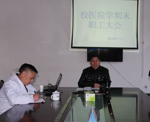 1月11日上午,校医院在四楼会议室召开全年工作总结会,会议由钟志刚副院长主持,校医院全体员工参加了会议。