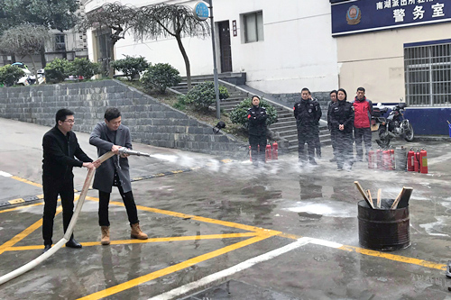 消防支队陈队长组织参训人员详细讲解了如何准确报火警、如何疏散逃生、如何扑灭初期火灾等基本消防安全常识,具体介绍了“一警六员”考核操作流程、考核环节中的重点和难点。随后,他对现场受训人员进行了灭火器灭火、消防栓灭火等多项知识和实操考核,整个考核过程中紧张有序,在场人员依次作答和操作并顺利完成全部内容。