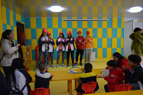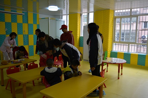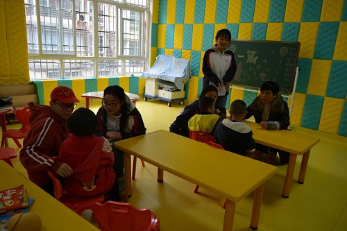 下午一点半,“红色志愿者们”集合完毕后,便乘车出发来到了九江阳光康复中心。志愿者分为了几个小队,有序进入不同楼层、不同房间。康复中心的老师先跟志愿者们详细介绍了孩子们的情况以及注意事项,便让志愿者们与孩子们自由玩耍。有趣的贴纸、诱人的零食让孩子们兴奋不已。志愿者们陪他们看电视、做游戏、聊天,不断给他们送去鼓励与表扬,孩子们脸上露出了灿烂的笑容。接着志愿者们在一个房间集合,同孩子们一起唱歌跳舞,孩子们手舞足蹈,欣喜万分。最后志愿者们同孩子们不舍告别,并互相约定下次再见。