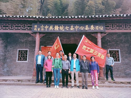根据九江学院党委关于“不忘初心,牢记使命”主题教育学习要求和经管学院党支部的学习工作的部署安排,经管学院教工第三支部及其所在教研室的部分老师在支部书记兼主任曾祥师带领下,9月18日赴九江彭泽县兆吉沟红色教育基地开展“不忘初心,牢记使命”主题党日活动。