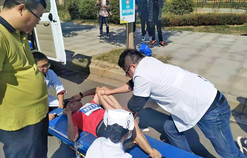 当天凌晨5点多,医务科副科长何佰顺带队该院医疗保障队集合出发,准时到达目的地。虽秋风瑟瑟但大家热情饱满,迅速换上工作服,摆放药品,调试急救设备。经过8个小时的全力医疗保障,至下午一点半比赛结束为止,附院医疗保障队反应迅速,处置果断,为参赛者提供了全方位的医疗服务,做到了“措施到位、转运及时、救治得当”,用过硬的技术和良好的素质,充分展示了附院专业的应急救治水平和无私奉献的职业风采。