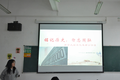 各班级团支书不约而同地以历史资料片回放的形式开启本次的团日活动,同学们都纷纷表达出对日本侵略者的愤懑以及对受难同胞的哀悼。A1711班团支书通过互动问答考查同学们对南京大屠杀历史事件的认知。B1821班同学们怀着沉重的心情看完视频,同学们强烈谴责日本侵略者的罪行,作为中华儿女,一定会“铭记历史,不忘国耻”。