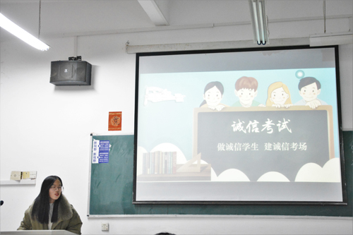 “树道德之新风,立诚信之根本。”各班团支书通过各种形式向同学们强调考试纪律以鼓励学生积极备考。A1912班团支书宣读了学生手册中考试舞弊违纪的处理办法,强调舞弊的严重后果,以此警示同学们能够摒除侥幸心理,抛弃投机取巧的方法。A1921班团支书则以互动问答的方式向同学们传递诚信考试的规则,同学们在现场纷纷提出了自己对诚信考试的看法,大家表示应该自觉抵制作弊行为。最后,各班团支书预祝同学们能顺利通过期末考试。