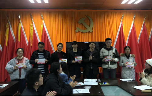 会上,党委书记赵宇剑同志为六名党员同志送上政治生日贺卡,以此不断强化党员身份意识和责任意识,激励党员牢记党的宗旨,践行入党誓言。同时,赵宇剑同志代表党委对如期转正的五名同志表示祝贺,并希望全体党员不忘初心,牢记使命,在思想上不滑坡、行动上不减力,不仅在仪式上、程序上入党,更要在思想上、行动上入党。